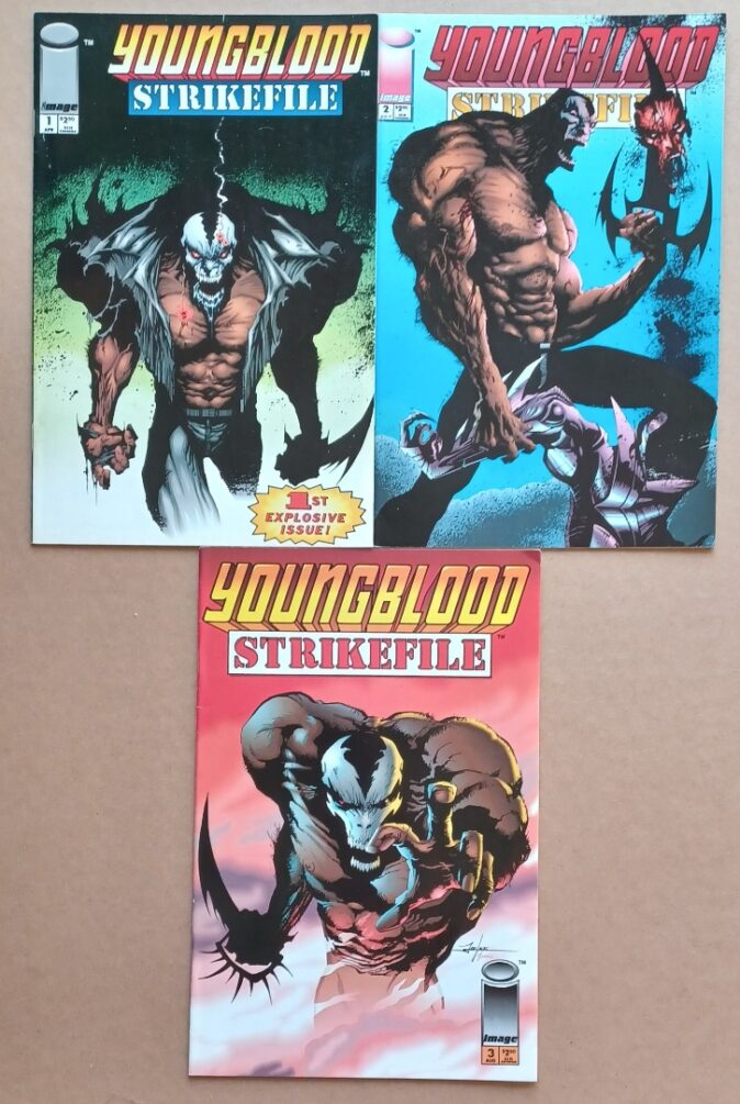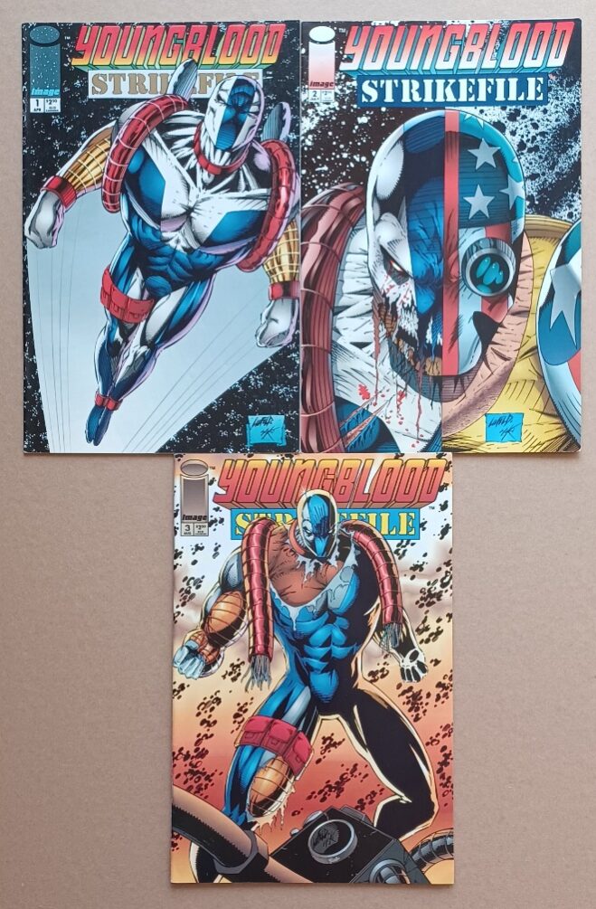 Youngblood Strikefile1-3 set flipbook format Side A Super Patriot, Side B Chapel