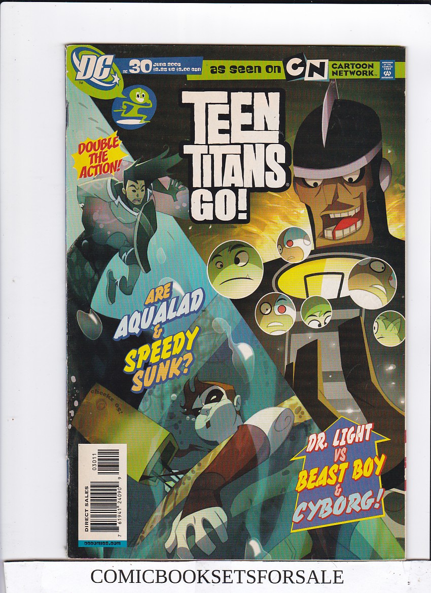 Written by J. Torres Art by Scott Iwahashi & Francisco Herrera. Cover by Sean Galloway. What’s better than one Teen Titans Go story? How about two of ’em? This special double feature starts with Speedy and Aqualad going toe-to-tentacle with a nasty sea monster. Then it’s up to Cyborg and Beast Boy to put a stop to Dr. Light before he gets his hands on Cy’s power batteries!