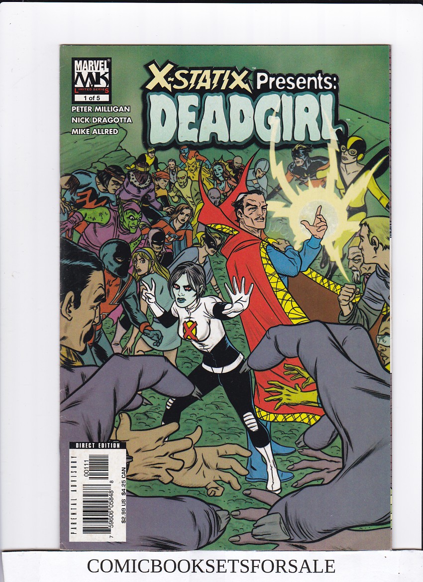Written by PETER MILLIGAN Art by NICK DRAGOTTA AND MICHAEL ALLRED Cover by MICHAEL ALLRED. It’s hard to keep a good girl down…especially when she’s Dead! That’s right, True Believers, hold onto you’re freaking hats! After a brief hiatus caused by their, ahem, deaths, everyone’s favorite mutants are back! And this time, they’re bringing a host of…questions with them. Like why do some heroes and villains keep on dying, only to return from the dead? And why do other heroes and villains bite the bullet, only to remain dead? Who decides on this craziness? Is it some karmic wheel in the sky? Some fickle finger of fate? Or is it just some guy in the marketing department? Well, one such deceased villain, named The Pitiful One, is going to find out. When the Pitiful One decides that he’s tired of being dead, he assembles a posse of Marvel’s deadest villains to attack the world of the living. And it’s up to Doctor Strange to stop him and his evil cohorts-but he needs help from…well, you know. With Kraven the Hunter, Tike Alicar, and a few other surprise, dead guests.