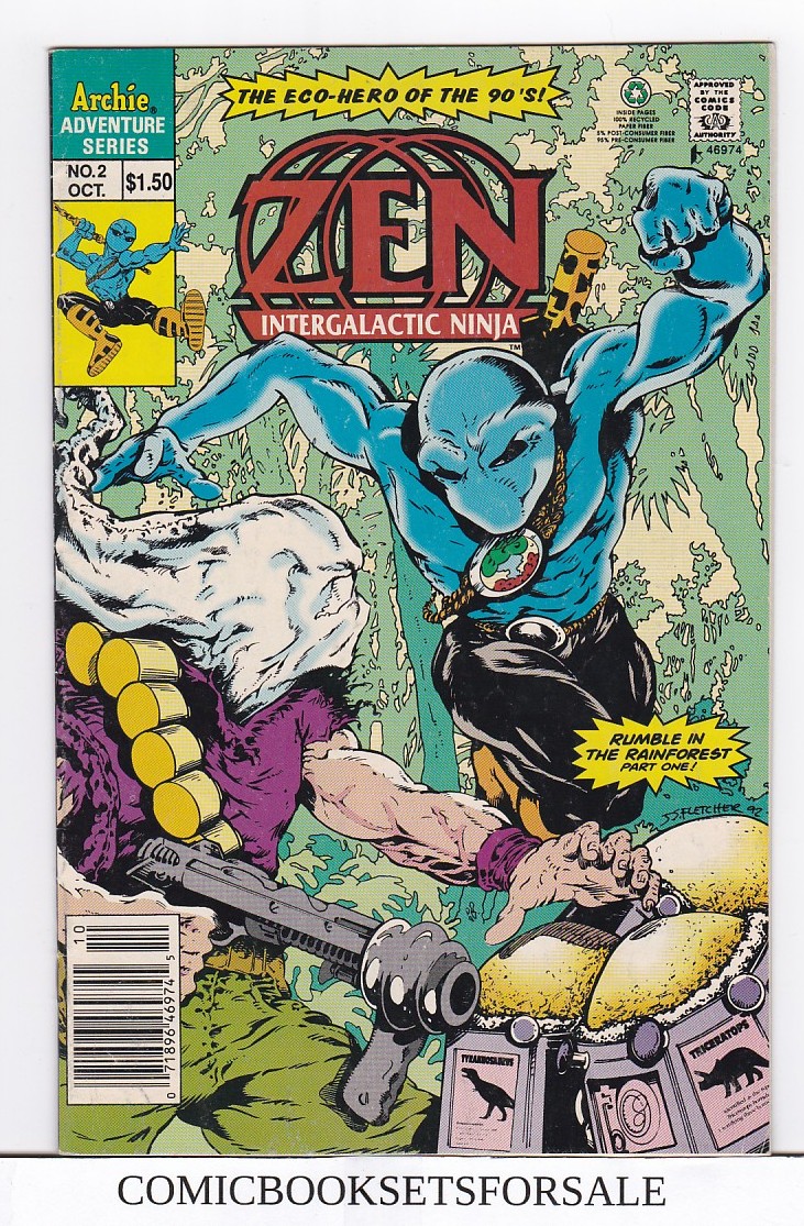 Rumble in the Rainforest, Part 1. Story by Steve Stern. Art by Ross Andru, Mike Esposito and Will Cypser. Cover by Jared K. Fletcher. Archie Comics presents Steve Sterns sci-fi hero as a kid-friendly eco-warrior, featuring art by Silver Age legends Ross Andru and Mike Esposito. Zen and the Recycled Heroes battle Lord Contaminous in the Amazon rainforest, only to find something none of them expected: dinosaurs! This was the final series of Silver Age legend Ross Andru.
