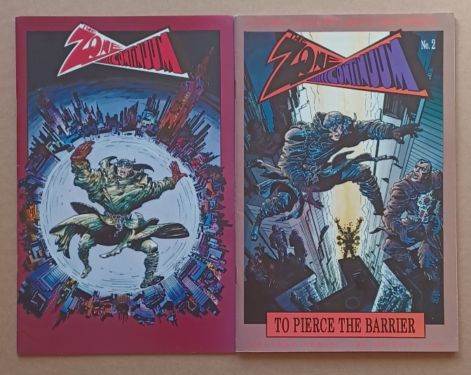 Story, art and cover by Bruce Zick. An adventure set in multiple parallel dimensions, or Zones, that overlap with Earth. Talon, the protector of Zone 27, learns that his zone is shrinking, which means death for all within…but Professor Platts zone goggles may be the solution